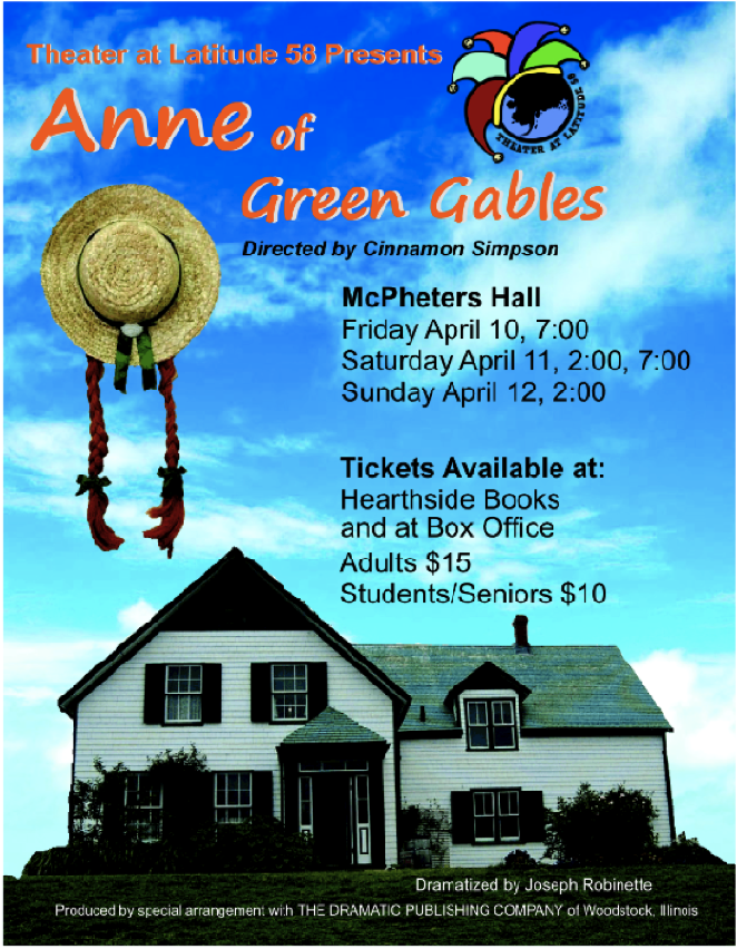 “This dramatization captures the charm and excitement of L.M. Montgomery’s enduring classic about an orphan girl, Anne Shirley, from her first encounter with her austere guardian to her thrilling graduation from Queen’s Academy. The play faithfully recreates the memorable events and characters from the brilliant novel. All the tragedies and triumphs that mark Anne’s growth from adolescence to early adulthood are here: her friendship with Diana, her feuds with Gilbert, her adoration of Matthew, the mistaken wine bottle, the cake disaster, the broken leg, the scholastic achievements, and the saving of Green Gables. Whether the playgoer is an ‘old friend’ of Anne’s or meeting her for the first time, this play will solidify a lasting friendship between the audience and one of literature’s most unforgettable characters. The flexibility of casting and the simplicity of the set make this an ideal production for community and school groups.”