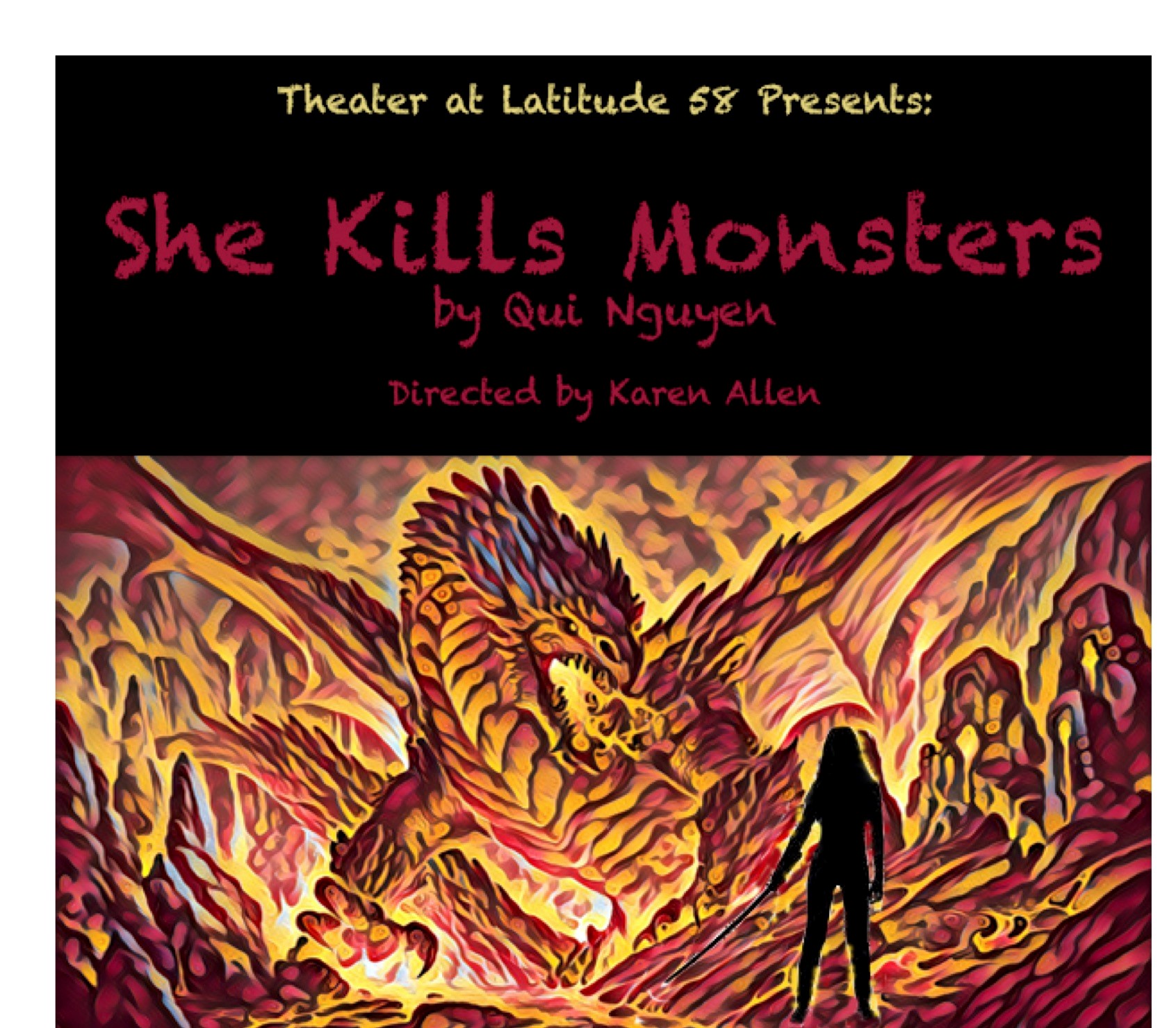 “She Kills Monsters tells the story of Agnes Evans as she leaves her childhood home in Ohio following the death of her teenage sister, Tilly. When Agnes finds Tilly’s Dungeons & Dragons notebook, however, she finds herself catapulted into a journey of discovery and action-packed adventure in the imaginary world that was her sister’s refuge. In this high-octane dramatic comedy laden with homicidal fairies, nasty ogres, and ’90s pop culture, acclaimed playwright Qui Nguyen offers a heart-pounding homage to the geek and warrior within us all.”