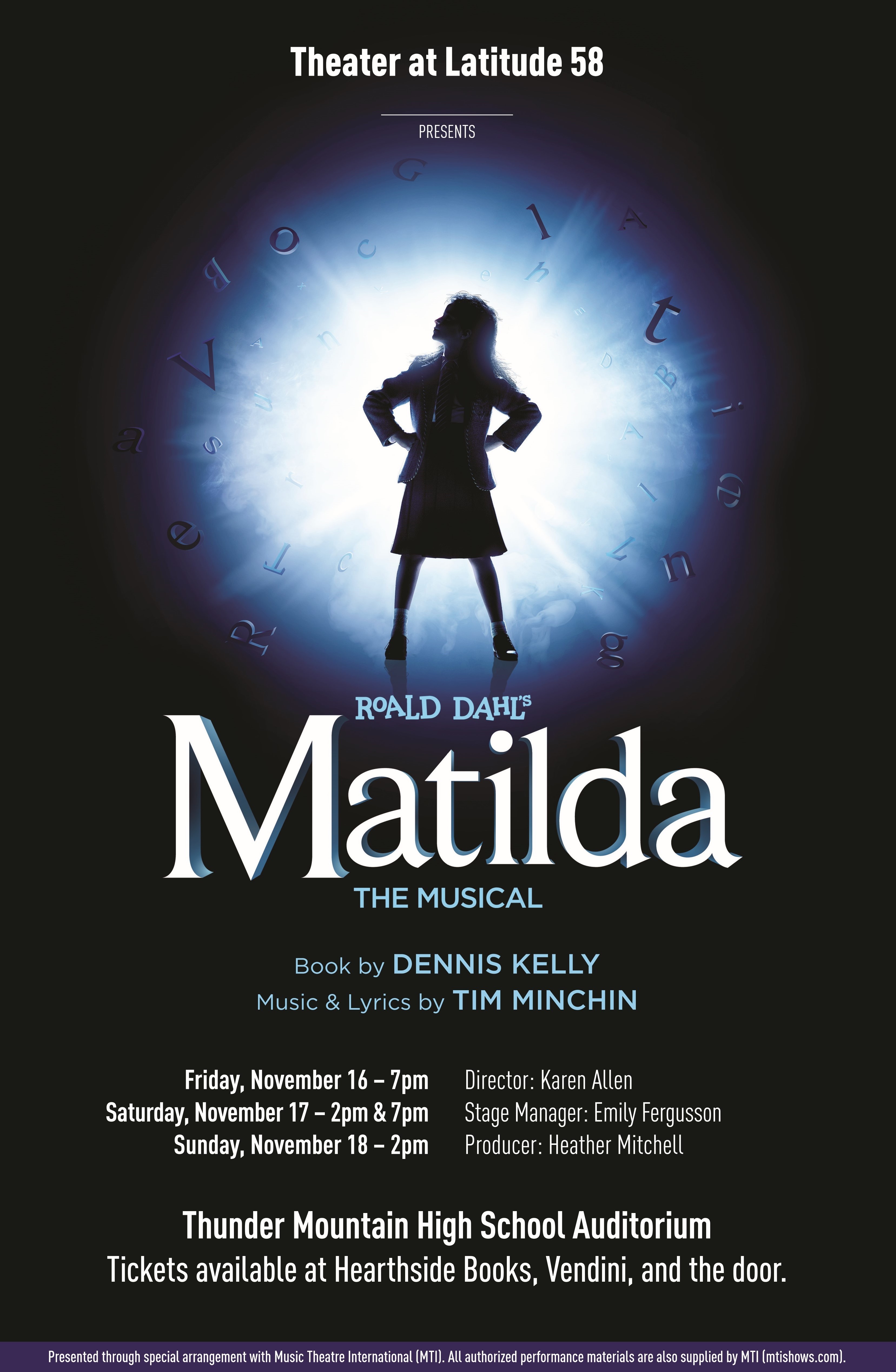 “Matilda is a little girl with astonishing wit, intelligence and psychokinetic powers. She’s unloved by her cruel parents but impresses her schoolteacher, the highly loveable Miss Honey… Packed with high-energy dance numbers, catchy songs and an unforgettable star turn for a young actress, Matilda is a joyous girl power romp. Children and adults alike will be thrilled and delighted by the story of the special little girl with an extraordinary imagination.”