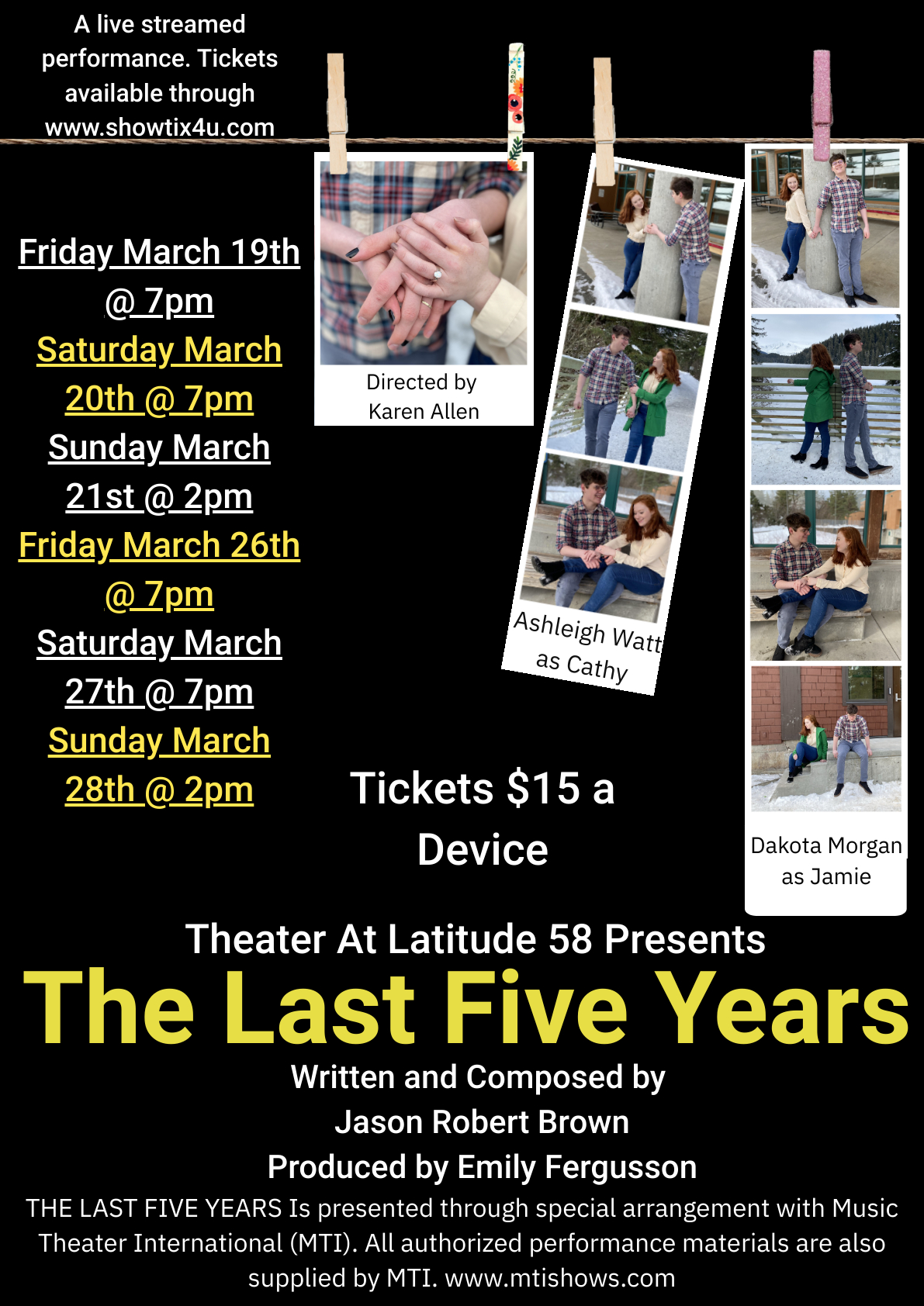 This modern musical ingeniously chronicles the five-year life of a marriage, from meeting to break-up and from break-up to meeting.